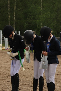 ![]() Minikoulumestaruuden voittaja 2025 Wilma Rönnback (ratsulla Dyre) | ![]() Juniori- ja senioriestemestarit 2025 (yhdistetty luokka, re 75cm, taitoarvostelu) Vasemmalta oikealle: 1. Mea Tiainen 2. Iina Siukonen 3. Ella Koljonen |