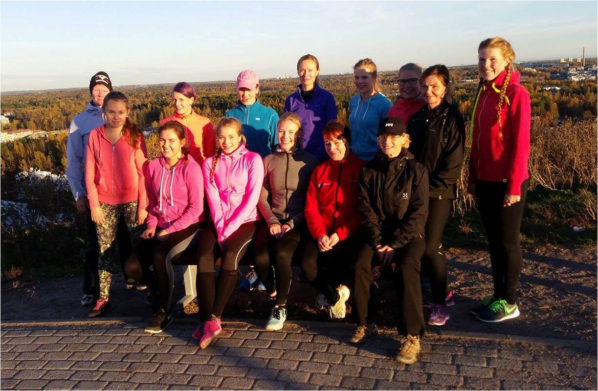Ratsastuksenopettajat Martina Keskinen ja Tuija Rahkamaa järjestivät majoranilaisille ja tallilaisille liikuntatreffit Malminkartanon portailla sunnuntaina 18.10. Opet osallistuivat aiemmin syksyllä Liikkuva Ratsastaja -oheisliikunnan ohjaajakoulutukseen ja liikkumistreffit olivat heidän näyttönsä kurssiin liittyen. Liikkuva Ratsastaja -koulutuksessa perehdyttiin ratsastuksen oheisliikuntaan huomioiden lajin omat erityispiirteet ja tarpeet. Ensi vuonna RS Majoranin teema on liikkuminen, haluammekin korostaa muun liikkumisen tärkeyttä ratsastuksen rinnalla. Tästä lisää seuraavien kuukausien aikana. Malminkartanon liikuntatreffeillä oli ohjaajien ja avustajien lisäksi paikalla 13 osallistujaa, neljä junioria ja loput senioreita. Aluksi verryteltiin rappujen viereisellä kentällä, käveltiin, hölkättiin ja venyteltiin. Portaat noustiin kolmesti, joka kerran hieman eri tyylillä: astuen joka portaalle, astuen joka toiselle portaalle työstäen erityisesti pakaroita ja pohkeita sekä juosten. Rappusten huipulla tehtiin erityisesti ratsastukseen sopivia ja seisaaltaan tehtäviä lihaskuntoliikkeitä ja venytyksiä. Ratsastuksessa korostuu erityisesti keskivartalon hallinta ja syvät vatsalihakset. Lapapunnerrukset puolestaan työstivät ja avasivat jumittunutta ylävartaloa. Kolmannen porrasnousun jälkeen alas käveltiin ja hölkättiin pidempää reittiä, palautellen ja kentällä tehtiin vielä loppuvenyttelyt. Keli suosi ja osallistujille jäi varmasti hyödyllisiä ajatuksia omaan liikkumiseen liittyen. |