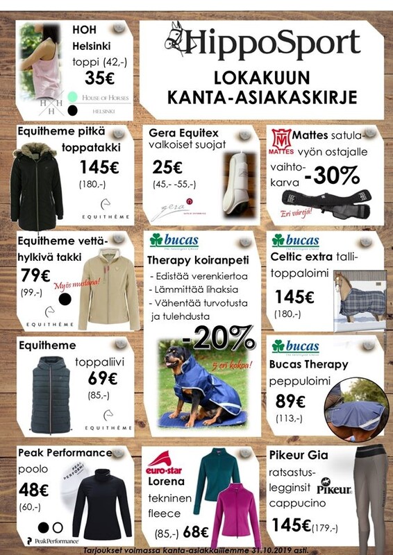 ![]() HippoSportissa perinteinen SHOWTIME 10.-12.10.2019! KAIKKI* -20%! Tarjous koskee 10.-12.10.2019 tehtyjä normaalihintaisia ostoja myymälässämme. Tarjous ei koske rehuja, varauksia tai lahjakortteja. Koskee uusia kauppoja. Ei kerrytä kantisbonuksia. Kaikki ostokset tulee maksaa heti käteisellä tai kortilla. |