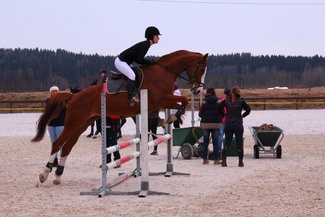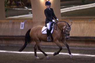 Espoon ratsastuskoulujen mestaruuskisojen HeB-luokan voittajat Terhi Markula ja Triinu. Kuva Emilia Alamäki. |